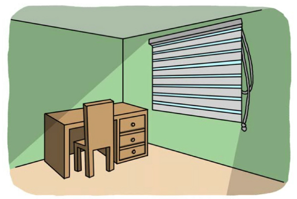 그래서 책상을 배치할 때는 창문에서 되도록 멀리 해주는 것이 좋다. 만약 방의 구조상 어쩔 수 없이 창문을 봐야 한다면 블라인드나 롤스크린을 이용해서 창문을 가려주는 것도 방법이다.
